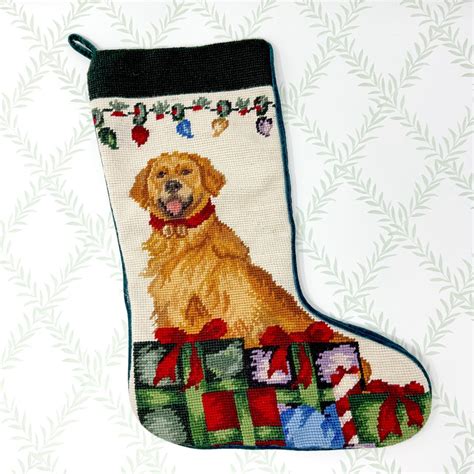 Golden retriever needlepoint dog christmas stocking: some of the popular needlepoint stocking available on etsy include: